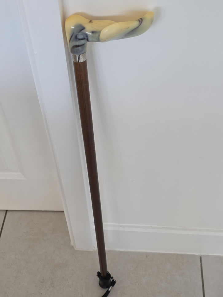 A wonderful day of lovely, warm sunshine which saw us driving up to Surrey. We went to meet M at C’s Residential Home where Richard was also arriving. These were moving times. P&C ‘s house was being vacated for the purchasers. We took away mementoes. Some pictures to remind us of them but also a walking stick that belonged to my lovely Mother in Law. It took me back immediately across the years.