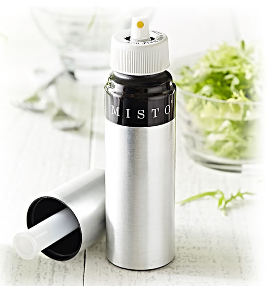 Filled with Greek olive oil, it sprays food with a fine mist which costs a small percentage of the calories we usually anoint our food with. Shame but it has to be done.