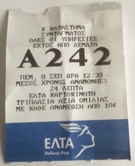 It’s nice to start a new week with a Lottery win ………. even if it is only £25.00/€30.00. It will buy us a reasonable bottle of wine in Athens.