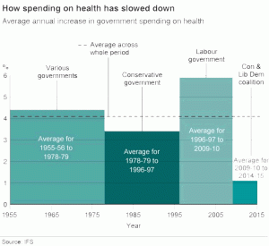 This graphic from the Institute for Fiscal Studies provides all you need to know about why you have to wait in A&E for hours or lie on a trolley in a corridor for hours or have your surgery cancelled because of lack of beds. The real question is, what is the motive. Am I cynical in suspecting that we are being softened up for a charging policy? Is this a long term aim of the Tories to weaken the country’s trust in a cradle to grave service and move people to private practices?