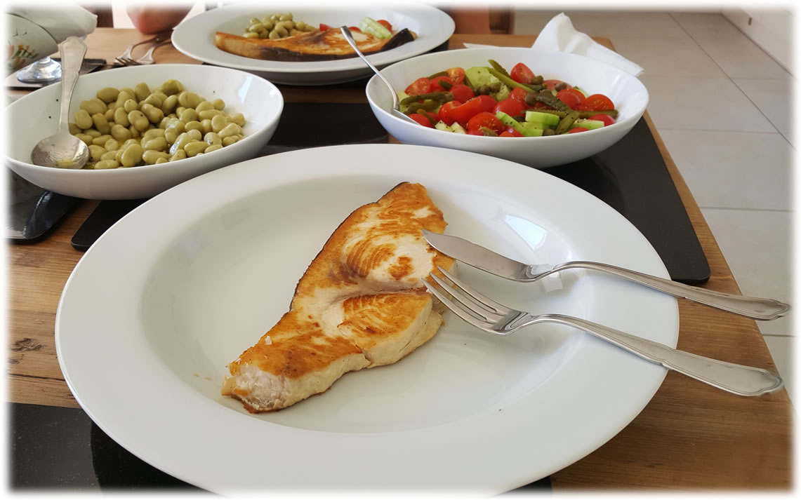 A sunny and warm day which reached 24C/75F in the mid afternoon. We went out to buy fish – Swordfish and Tuna Steaks plus Mackerel fillets – £65.00/€71.00 of future meals. I tested my INR. It is remaining steady at 2.5 and has been within my target for the past 18 months which is pleasing.