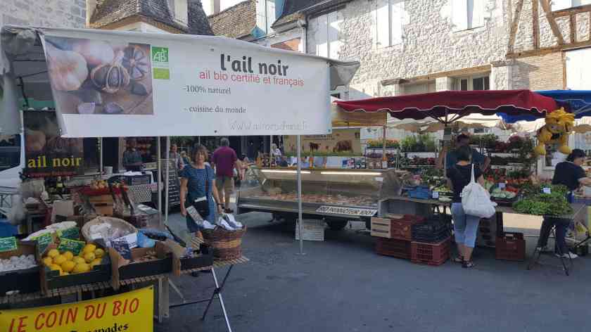 We went out to Sainte-Alvere, about 20km away and, once again, we had chosen market day. How France manages to sustain so many small scale producers can only be through these local outlets. Even so, it must be fairly precarious. Our problem is that we seem to have been to a different market each day and can’t physically store or eat any more food however special it is.