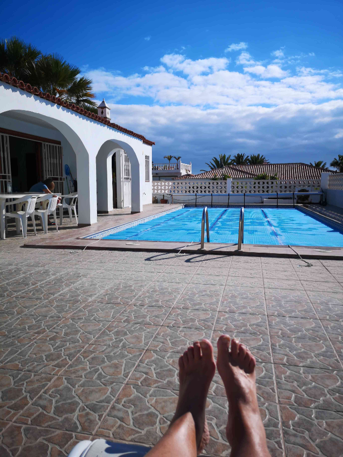 Another, glorious day for our last full one this month. We leave for the airport tomorrow morning and Gatwick tomorrow evening. Today was relaxing including another hour of swimming. We were really lazy and sat around the pool in the sunshine. We’ll quite miss this street. It is quiet, sunny and private.