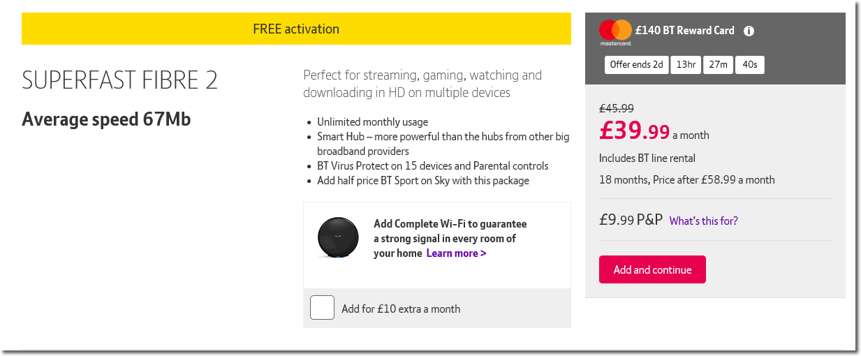 In addition to that, our ‘Contention Rate’ (the sharing of broadband width in an area) is going up all the time as new builds come on stream and need broadband and the demands we are placing on our broadband is increasing exponentially with not just one PC per house but many and tablets, smartphones, smart televisions and the onset of the ‘internet of things’ meaning I can control so many actions in my house – lights, heating, blinds, fridge, even my toothbrush over the net. I have Superfast Fibre Broadband from BT. This is fibre to the street cabinet and then old copper from there to our house. According to BT, this service could yield 67 Mbps but, when I enquired, they said in our area, we should expect 44 Mbps.