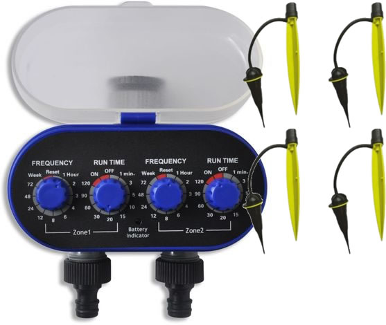 Gorgeous morning. Blue sky and strong sunshine. I am watering the lawns today in the face of a prolonged dry spell forecast for our area. I’m also looking for an addition to my automatic watering system to maintain the pots of herbs we are growing. Because we are not having an extended holiday in this Summer, it won’t be a major problem but, after collecting the new car, we may do the occasional short break on the Continent and even 4-5 days will need some watering.
