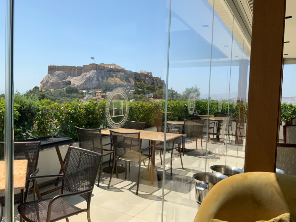 At the Electra Palace, our suite was still being cleaned so we took ourselves up to the roof terrace and had a drink while drinking in the views.