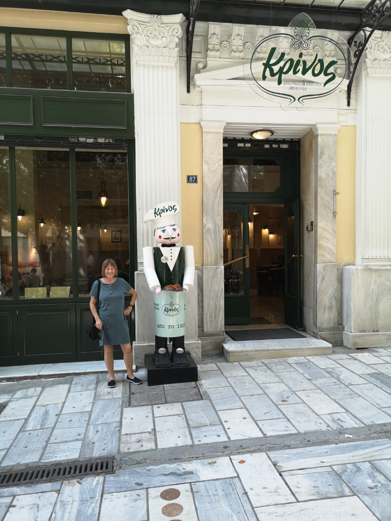 They are fried doughnut balls served in a bath of Greek honey and sprinkled with crushed pistachio nuts. We found the shops – Pauline had Loukamades and I had ice cream. We were both full afterwards and regretted it. We won’t do that again …… until next time.