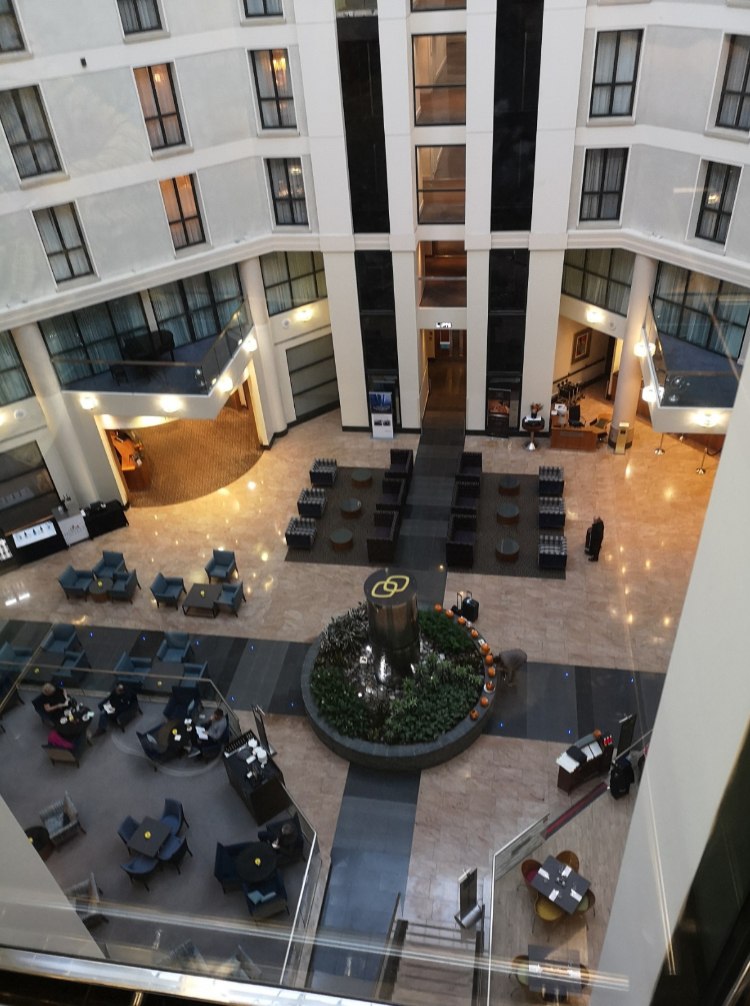 We are on the 7th Floor with a lovely view over the amazingly tree-lined countryside of Crawley. The drive here actually gave us the ability to look around at the autumnal Beauty of this area which is dominated by the airport.