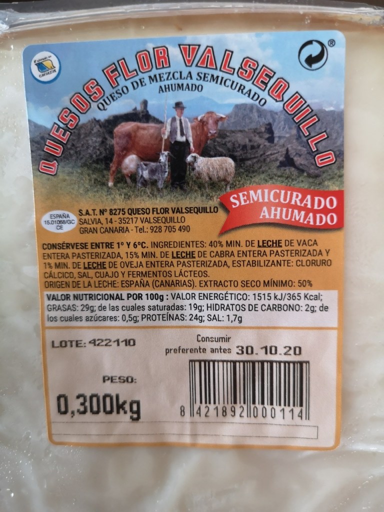 As regular readers will know, we are incorrigible foodies. One of the true pleasures of travelling and particularly abroad is sourcing and sampling the local foods. We love cheese but don’t eat a lot of it nowadays because of its high calorific content. However, foreign cheeses have to be sampled and on this trip we have become addicted (That might be a bit strong.) to a white, lightly smoked cheese called Quesos Flor Valsequillo. It is not for vegans like my sister, Catherine, because it comprises cows’, goats’ and sheep’s milk. Occasionally, if we are desperate for a snack after all this exercise, we will eat the smoked cheese with some Beetroot remoulade called Ensalada de Remolacha.