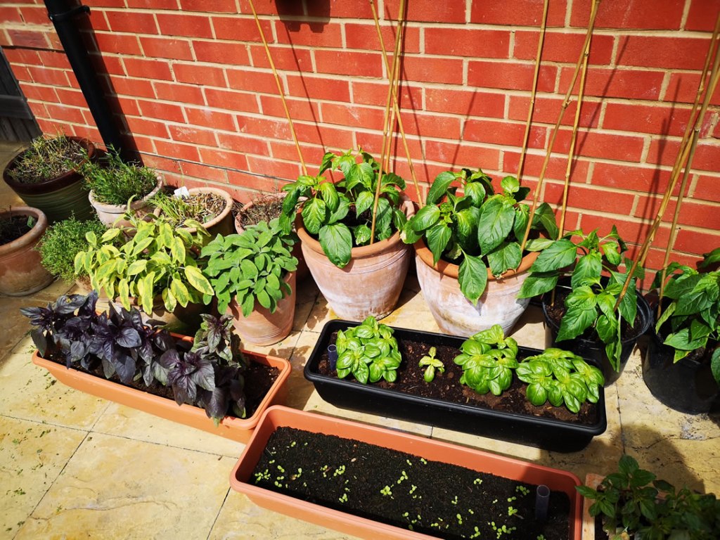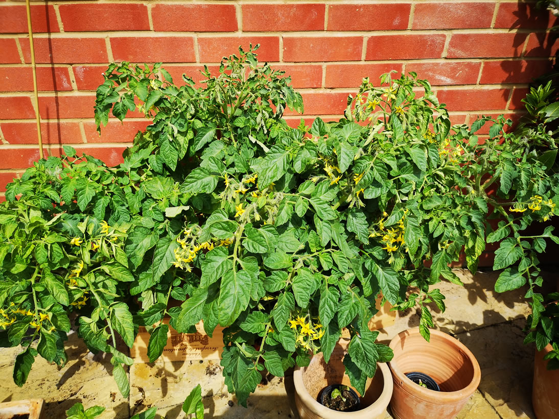 All around the patios at the moment are collections of pots and containers with tomatoes and herb plants that need maintenance. We could not have dreamt of growing tomatoes outside in Yorkshire and certainly not safely since early May. These have been grown from seed and are now flowering profusely. They are tumbler, cherry tomatoes which we eat by the ton. The five plants we have will probably supply a couple of weeks worth of salads but it is the fun of cultivating them which has made it worthwhile.