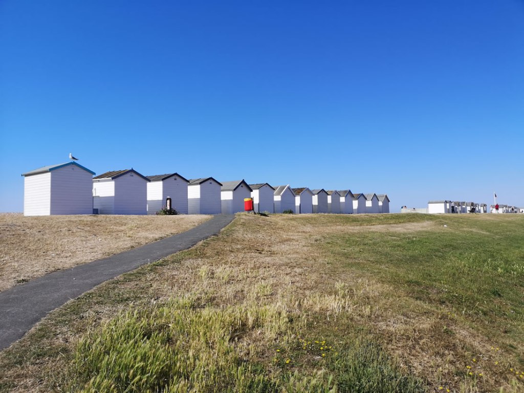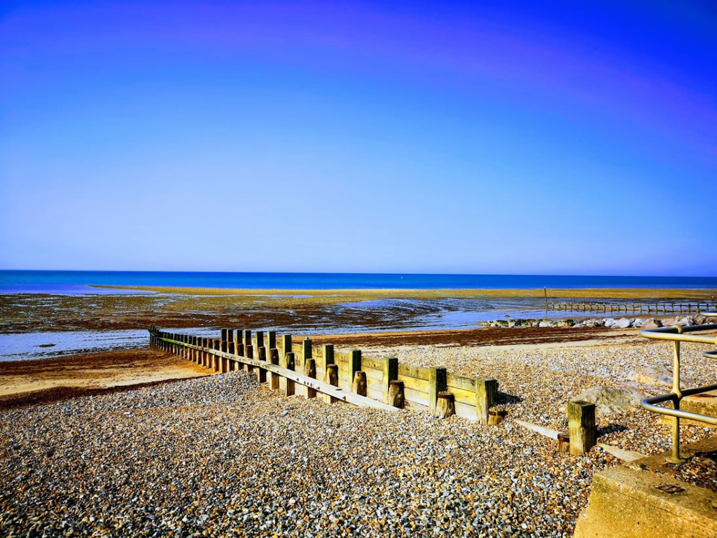 Home for coffee and then out to Goring on sea beach for a walk in the sea breeze cooled sunshine. By 9.00 am, it had reached 30C/88F and, by the time we set off home at 10.00 am, it was the full 32C/90F – hotter than Greece and much of Spain. This is the sort of weather Pauline and I relish.
