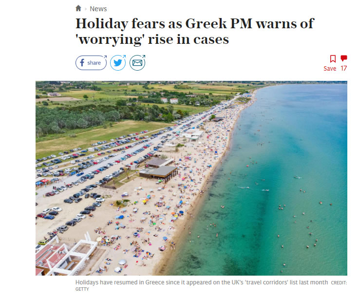 This one appears to suggest that the threat will come from the Greeks themselves – imposing travel bans or prohibitive quarantines because of rising infection rates – some imported but now, increasingly home-grown.