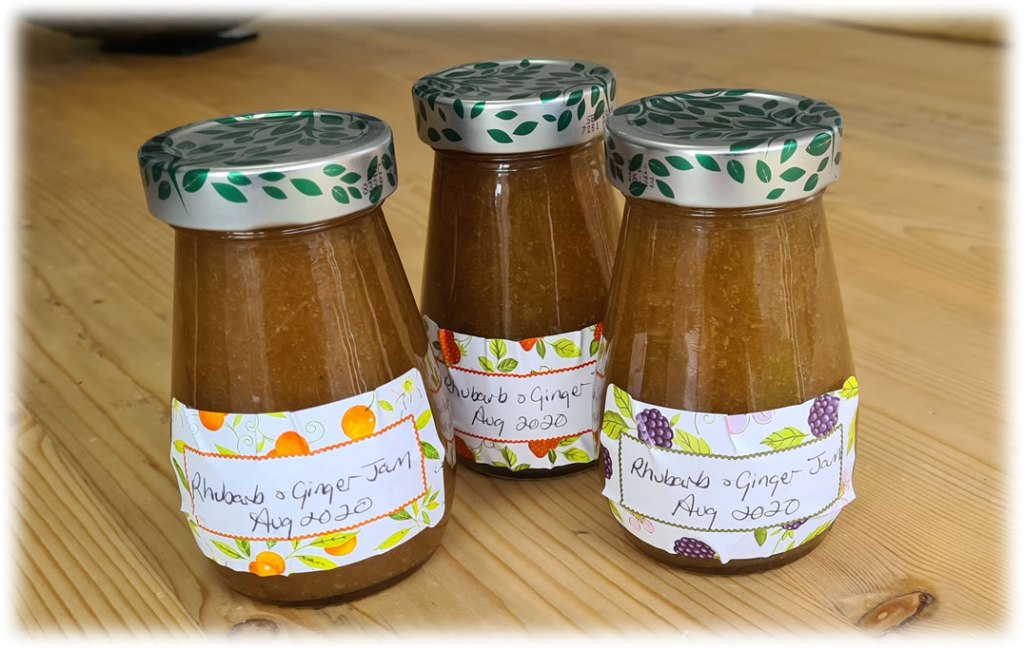 All that watering has had an equal effect on his rhubarb. Just after breakfast, my neighbour who is also called John, called round with an armful of rhubarb. Two hours later, Pauline had turned it in to Rhubarb & Ginger jam to eat with yoghurt. Delicious!