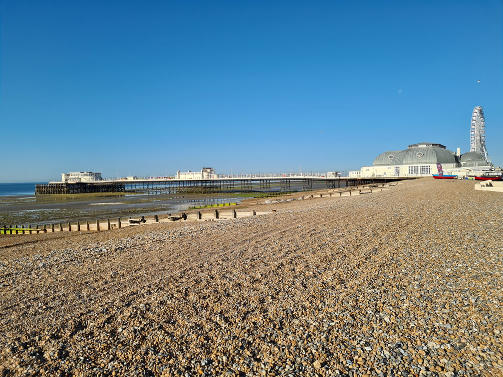 After a Greek night of heat and humidity, we were up at 6.00 am and out to Worthing town centre via the beach by 7.30 am. We had a click & collect from M&S to make. The beach and the town streets are extremely quiet.