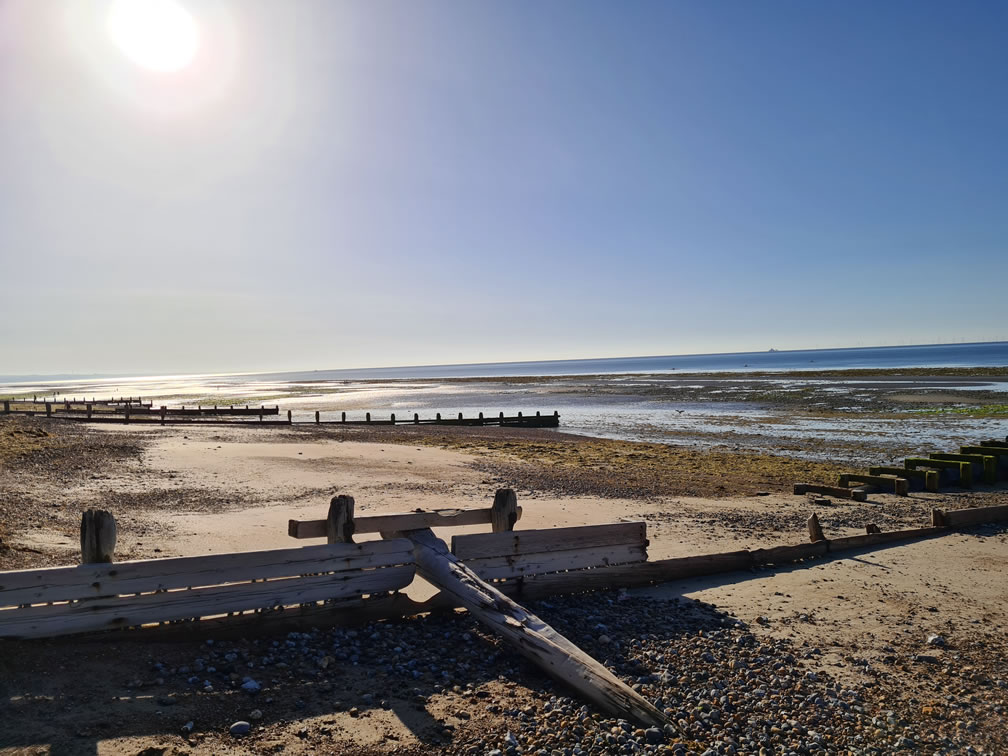Even the tide was out although it wasn’t yet 8.00 am. The temperature was 27C/81F and the sun was strong. The sea – far out – was like glass and really reflected the sky.