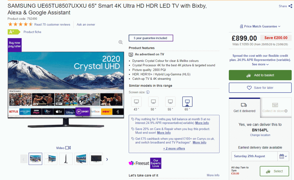 We have quite a lot of televisions in the house but I am no aficionado of their quality. It really doesn’t worry me as long as it works well. We have one LG in the Lounge and five more Samsungs around the house. The picture quality of the LG is inferior to all the others but it will be fine for a gym. The new one I’m proposing to buy says it has ‘Adaptive Sound automatically adjusts to what you’re watching, so your entertainment feels more immersive‘. It also features ‘Multi View lets you watch your TV whilst commenting on social media, all at once on the big screen.’ so I can Tweet politicians while they are lying through interviews.