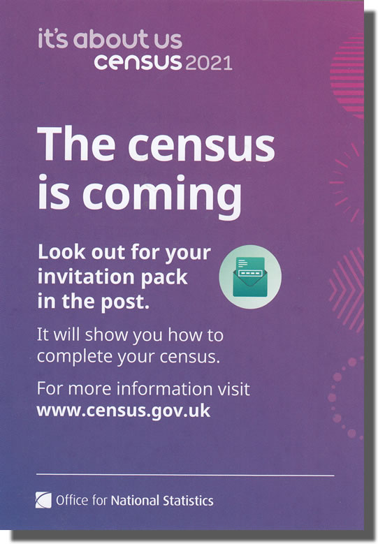 Glorious, warm – 15C/59F – and sunny morning. Been out for an early hour of walking. Sitting, shattered in the kitchen with the conservatory doors wide open as the sun and warmth streams in. Annoying little reminders keep popping up on my iPad telling me to complete the Census form. I love census data. It is so useful for finding people. It is a researcher’s dream. Of course, everybody should fill it out on pain of paying £1000.00/€1161.00 fine if they don’t.