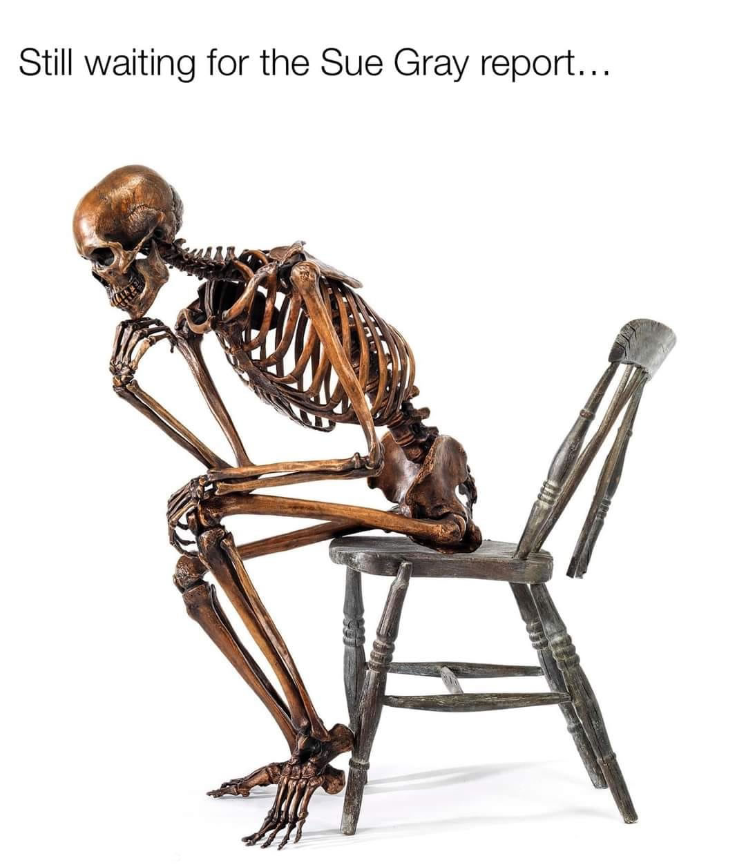 Not Waiting for Godot who Becket never allows to arrive but rather marking time, just like the country, waiting for the Sue Gray Report and wondering how it is being edited in favour of the corrupt.