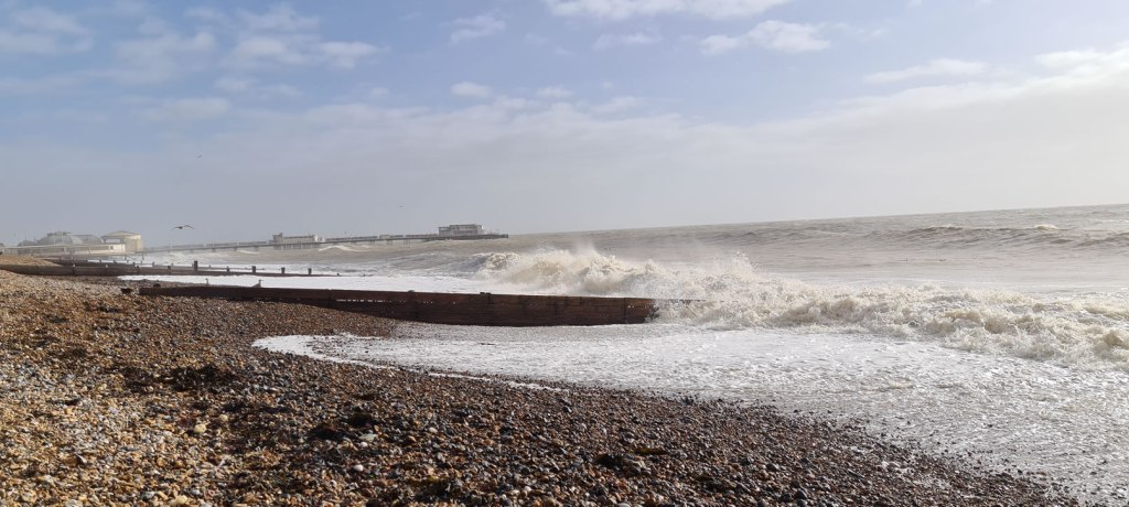 It is nice to see the coast in a different light. Quite a few people out being blown about. Amazing how powerful the sea is.