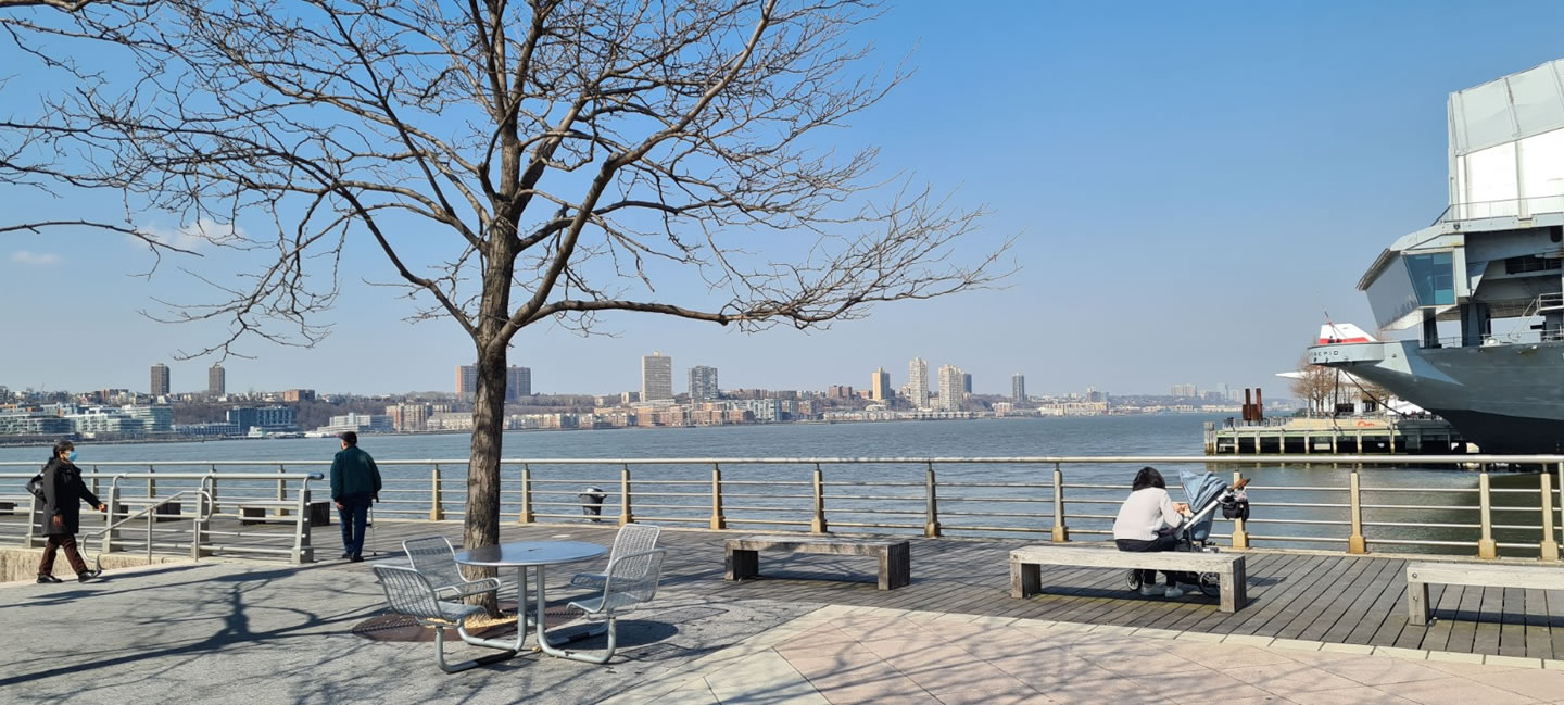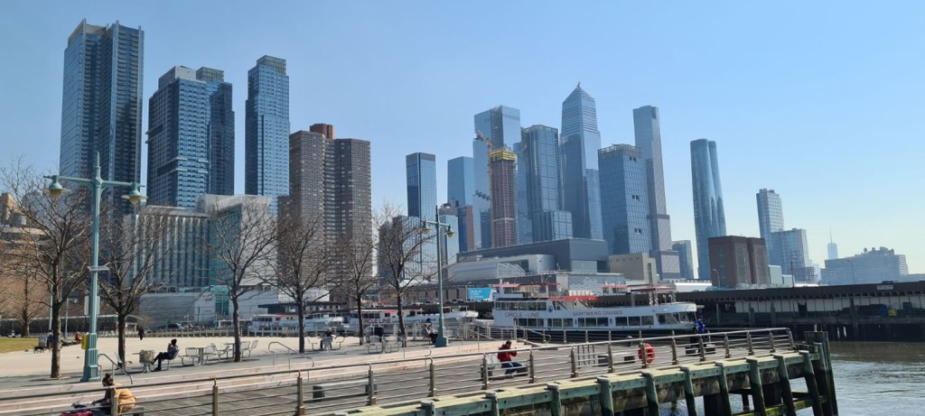 Clothes Shopping kills me more than any other activity in the world. We returned to our hotel for coffee and to watch a download of Prime Minister’s Questions. Refreshed by a dose of politics, we went out to walk down to the Hudson River in the most beautiful and warm Spring sunshine.