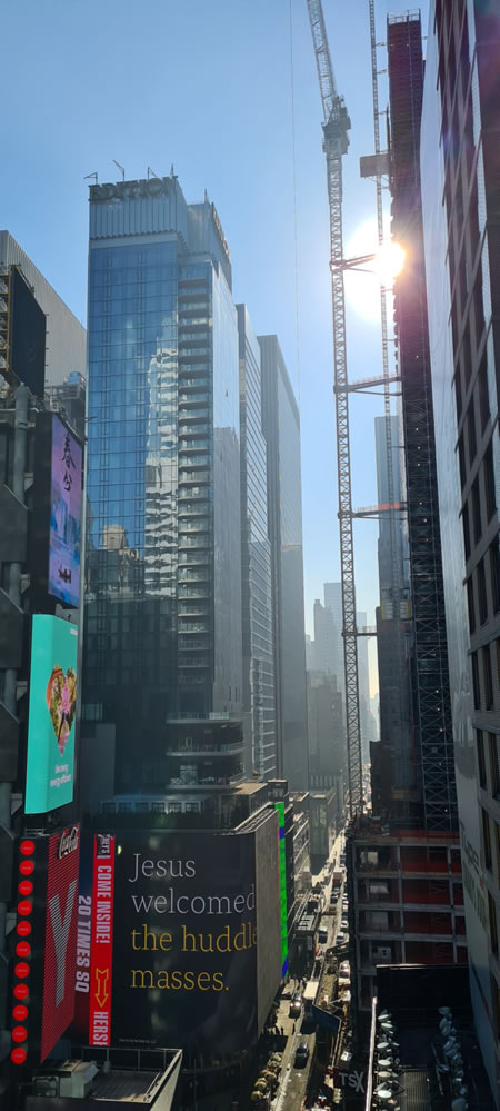 Anyway, this morning is a beautiful day. The weather is warm and sunny so we’ve probably brought a lot of unnecessary clothes. We have been down to get a ’Grab & Go’ breakfast and there is a ’free’ (We like that!”) acclimatisation, 2hr walking tour that the hotel offers and we are going with that this morning. Sending our love to all our readers from the Big Apple. Let you know later how it goes.