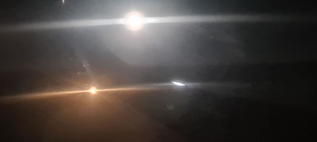 We weren’t in bed until 2.00 am and the alarm went off at 5.55 am. Out to the gym at 6.55 am. Because of the hour forward, it was still dark and moonlit and very warm – 22C/70F. As we flew back from JFK to Sarasota last night, I vainly tried to photograph the full moon through the window.