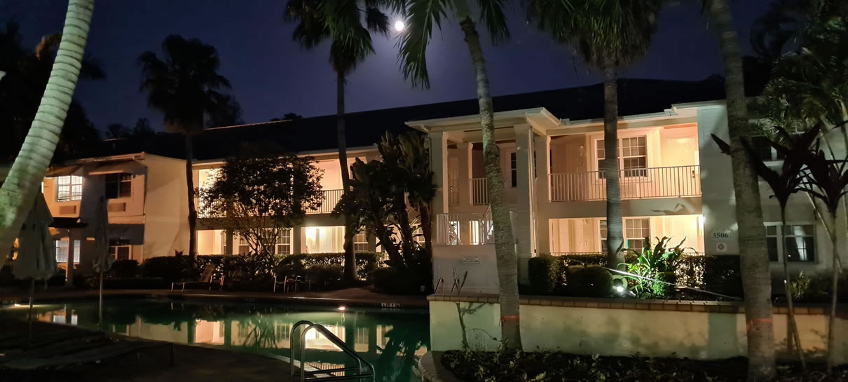 As I walked to the gym this morning that same moon was shining down through the palm trees and over the pool. The sky was dark but cloudless.