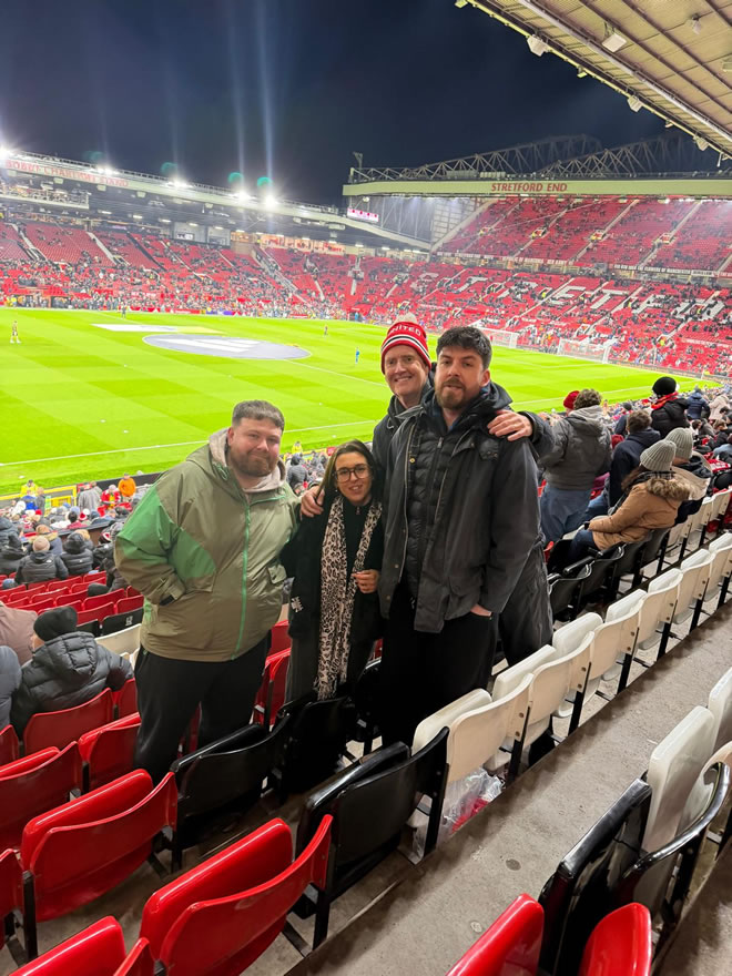The hooligans managed to guide an escapee from the Home for the Bewildered all the way up to Old Trafford. You can see here that he is struggling to keep hold of reality. He even bought me an xtra large shirt.