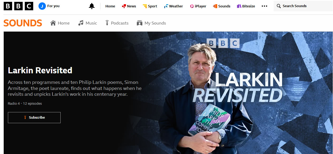 Over the past few days, I have been binge listening to the Poet Laureate, the Huddersfield poet, Simon Armitage, revisiting a number of Larkin’s poems on BBC Radio Sounds. Whether you know him or not, it’s well worth a listen.