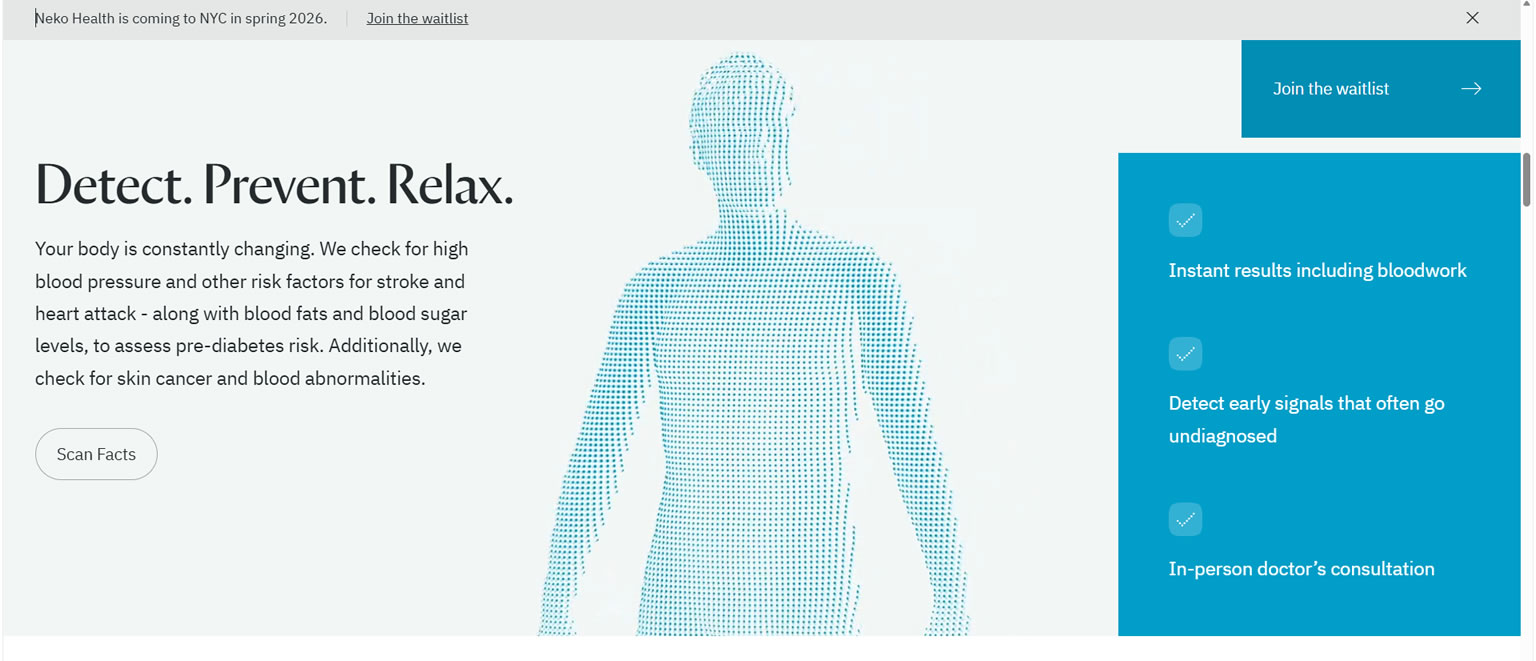 Today I am going to book a Whole Body Health Check in the Covent Garden facility of Neko Health. It is a new organisation set up jointly by two Swedes – a former member of the Royal Institute of Technology in Stockholm and the founder of Spotify whose £Billions is providing the finance.
