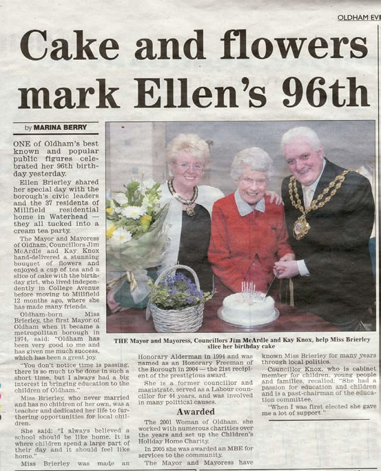When we visited to look the place over, one of the first people we came across was Ellen Brierley who I knew well from Education circles in the town. She had been Oldham’s first ever Mayor and Education Chair Woman. She had been on the Governing Board of my school and always fought for teachers. At the age of 96, she had developed dementia and moved into the care home. She died shortly after that. The mists of time enveloped her for the last time but see, I raise her up temporarily here. We all continue to exist in other’s memories.