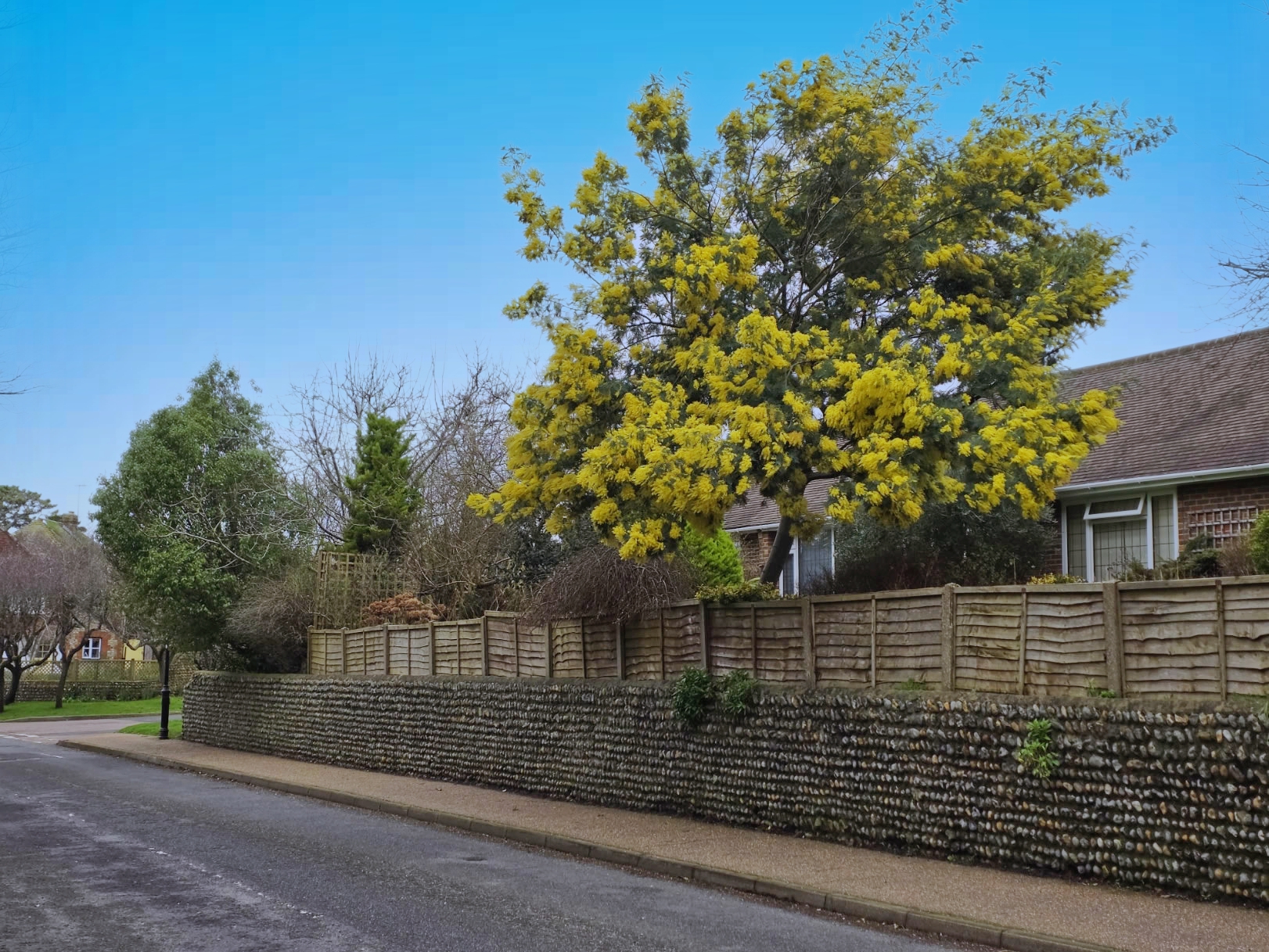 Walking through the village this morning, this tree just drew me to it. I hadn’t got a clue what it was although, perhaps I should have. It is Mimosa or Acacia dealbata. Native to Australia, it isn’t fully hardy in the UK other than in southern and coastal regions where winters are milder.