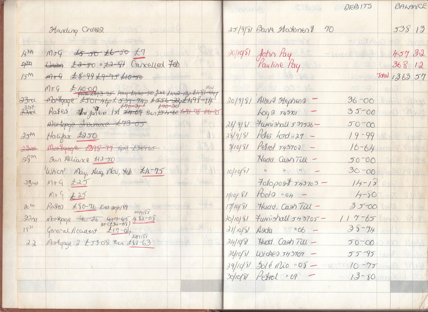 Just 8 years later, our salaries had more than doubled because of big catching-up pay awards and career promotions and we were feeling affluent. We had bought a big, new house with an acre of land in a Conservation village, we had bought four new cars, taken out Health Insurance at a cost of £600.00 per year first with Clinicare and then with Bupa. And our accounts were preparing to go digital.