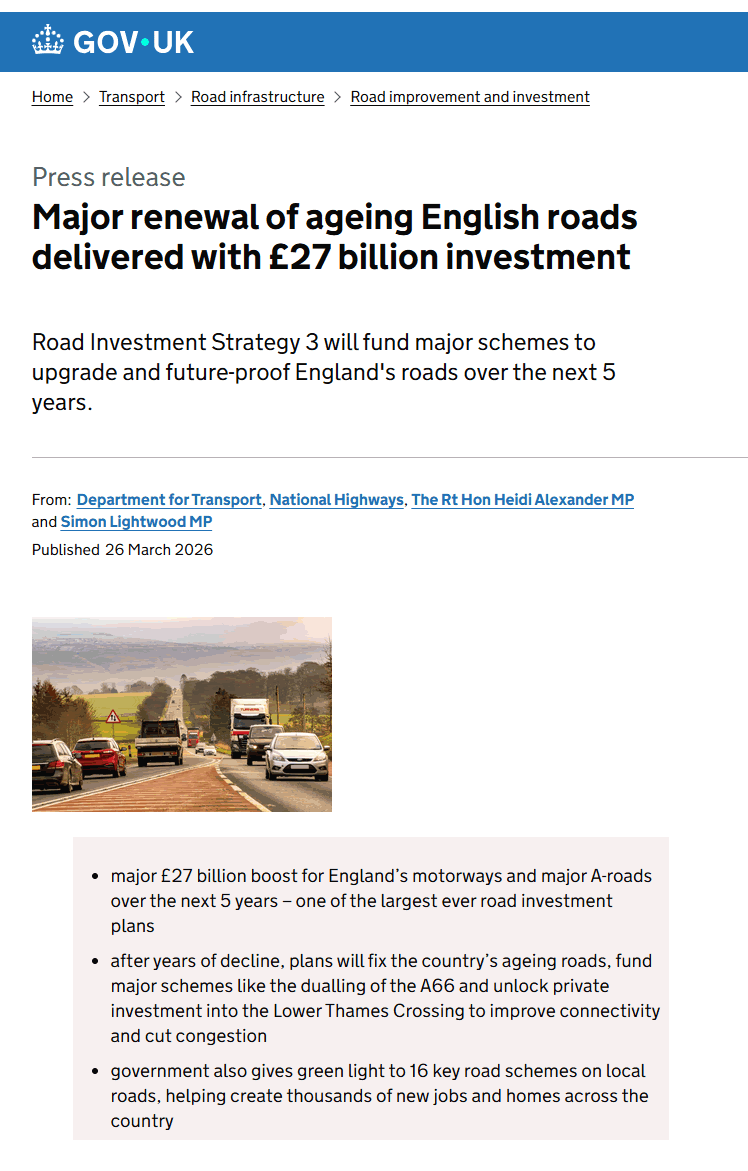 Of course, the turmoil out on the world’s rim is bleeding back into our own lives as the world economy cracks under the strain. It is also derailing the Labour Government’s hard work as interest rates were due to reduce again. Inflation was forecast to return to the BoE’s 2.0% and net migration was expected to go negative by the end of the year. Now, the reverse is expected. This major investment in roads has almost gone out unannounced and almost unnoticed as the noise of war clouds everything.