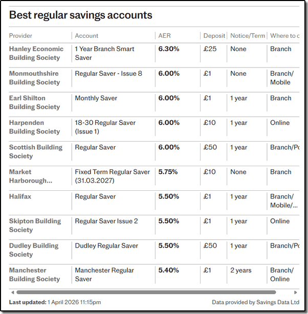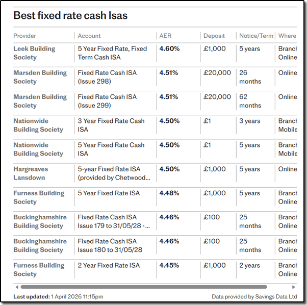 I’m afraid I’ve had a second blank month on Premium Bonds so the experiment is going a little sour at the moment. It’s going to take a big prize to catch up at this rate. I’m still considering ISA investments at the moment. In fact, I may hold off for a while to see if interest rates, which were forecast to fall, have another rise. The current league table looks like this above. I certainly don’t want to tie money up for more than 3 years but it would be nice to get 5.00% tax free on £40,000.00 over that period. As you know, with compound interest, that would make £6,305.00 over the period.